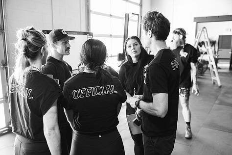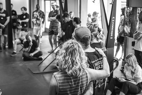 Where capacity met consequence. Four elimination phases. One team cut each round. It all started with Concept 2 BikeErg relays and sandbag carries. With each phase, the bike intervals shortened and the carries stretched longer.